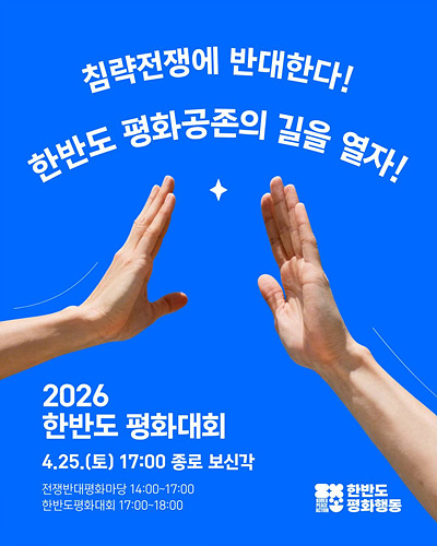 2026 Çѹݵµ ÆòÈ´ëȸ´Â ¿ÀÈÄ 2½ÃºÎÅÍ 5½Ã±îÁö ¿ì¸®¹ÎÁ·¼·Îµ½±â¿îµ¿°ú Á¶°èÁ¾ ¹ÎÁ·°øµ¿Ã¼ÃßÁøº»ºÎ µî ÁÖ¿ä ´ÜüµéÀÌ ºÎ½º¸¦ ¸¶·Ã, ÀüÀï¹Ý´ëÆòȸ¶´çÀ» ¿°í ¿ÀÈÄ 5½ÃºÎÅÍ 6½Ã±îÁö º» Çà»ç¸¦ °³ÃÖÇÑ´Ù.