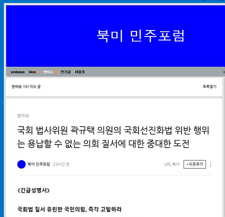 ºÏ¹Ì¹ÎÁÖÆ÷·³ÀÌ 19ÀÏ ¼º¸íÀ» ³»°í ÃÖ±Ù ±¹È¸ ¹ýÁ¦»ç¹ýÀ§¿øÈ¸ ȸÀÇÀå¿¡¼ ¹ß»ýÇÑ ±¹¹ÎÀÇÈû ÀÇ¿øµéÀÇ Áý´ÜÇൿÀ» ¡°¹ÎÁÖÁÖÀÇ ÀÇ»ç ÀýÂ÷¸¦ À¯¸°(ë³×õ)ÇÑ Æø·Â ÇàÅ¡±¶ó°í °ÇÏ°Ô ºñÆÇÇϸç, °û±ÔÅà ÀÇ¿øÀ» ºñ·ÔÇÑ °ü·Ã ÀÇ¿øµéÀ» ¡¸±¹È¸¼±ÁøÈ¹ý¡¹ À§¹Ý ÇøÀÇ·Î Áï°¢ °í¹ßÇÒ °ÍÀ» Ã˱¸Çß´Ù.